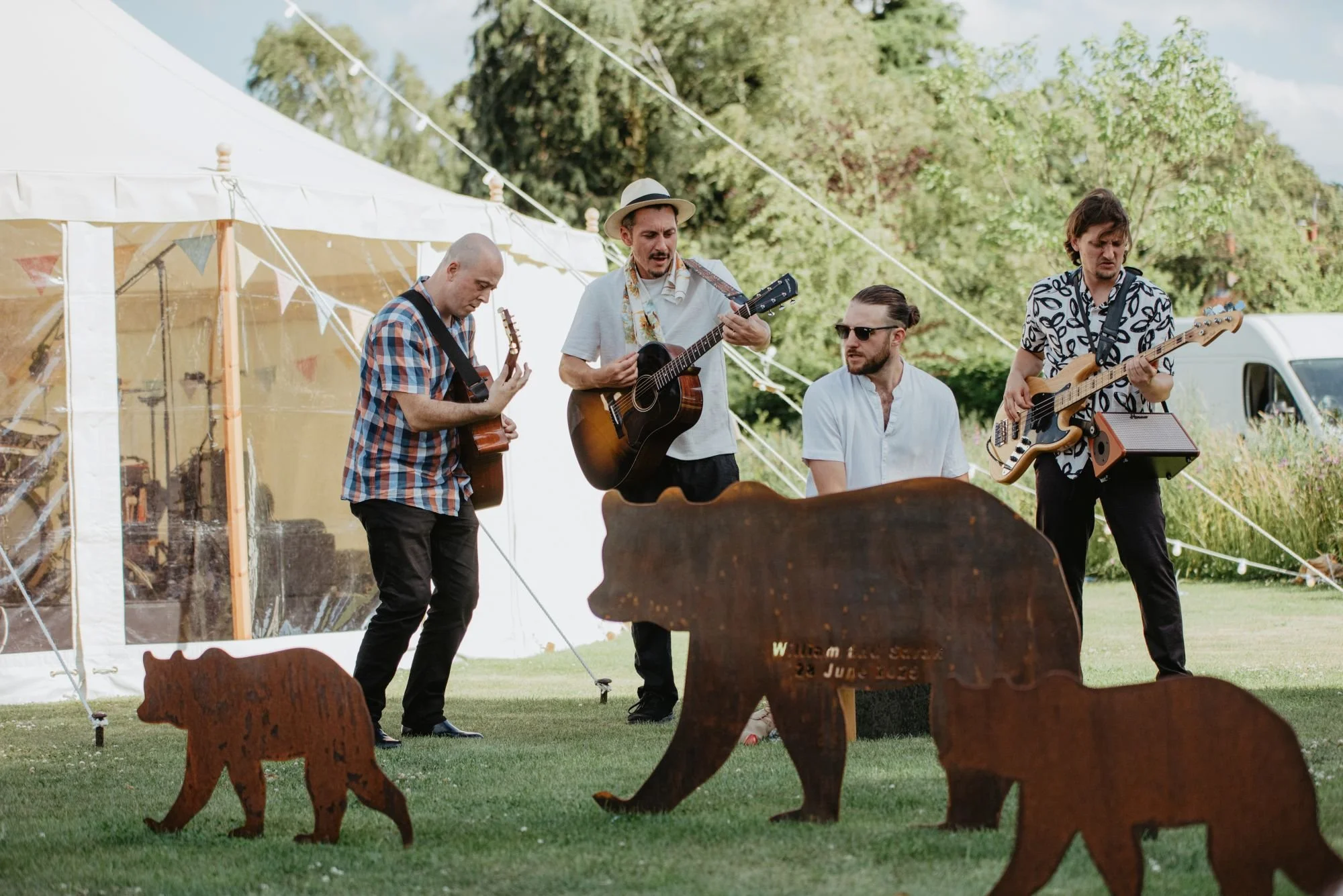 Everyone gathered in the main marquee for a classic three course wedding breakfast before the band opened the dance floor for the evening. From that moment on, it was a full on celebration with music drifting out into the warm night, drinks flowing, and guests dancing nonstop. The tea and coffee station in the chill-out marquee remained open and a massive hit with guests who needed a break from dancing!