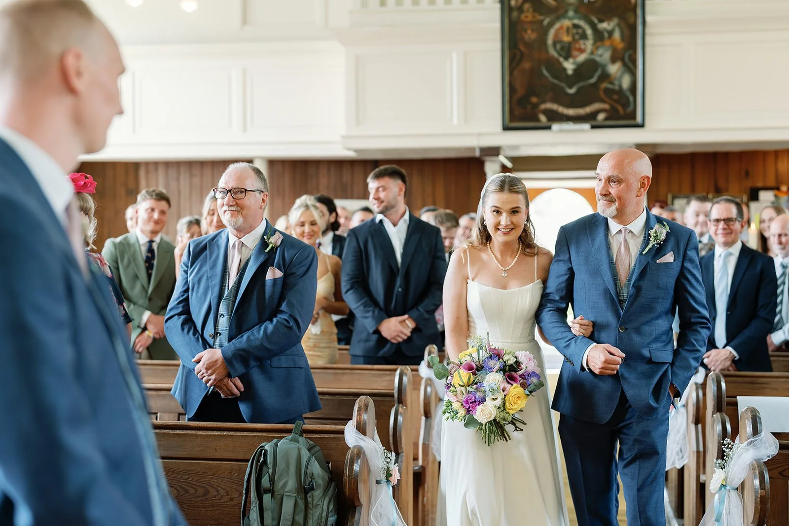 Lucy and George began their celebrations with a heartfelt church ceremony surrounded by family and friends. The traditional vows, organ music, and atmosphere of the church set the perfect tone for the rest of the day.
